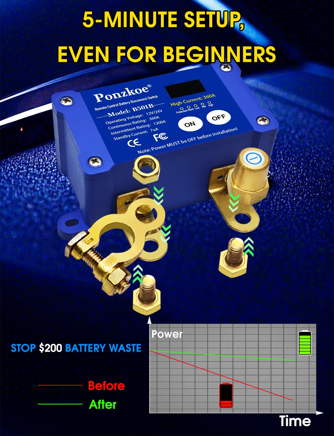 - 【1-Click Protection - Upgraded Heavy Duty 250A】Tap the keychain remote to immediately cut off power, thwarting potential theft and halting parasitic battery drain. Whether parked in a bustling lot or stored remotely, your car, RV, truck, trailer, ATV or marine boat remains safely guarded, particularly useful for long-term parking, anti-theft measures, car wiring changes, accidentally leaving lights on, and dealing with aging wiring.