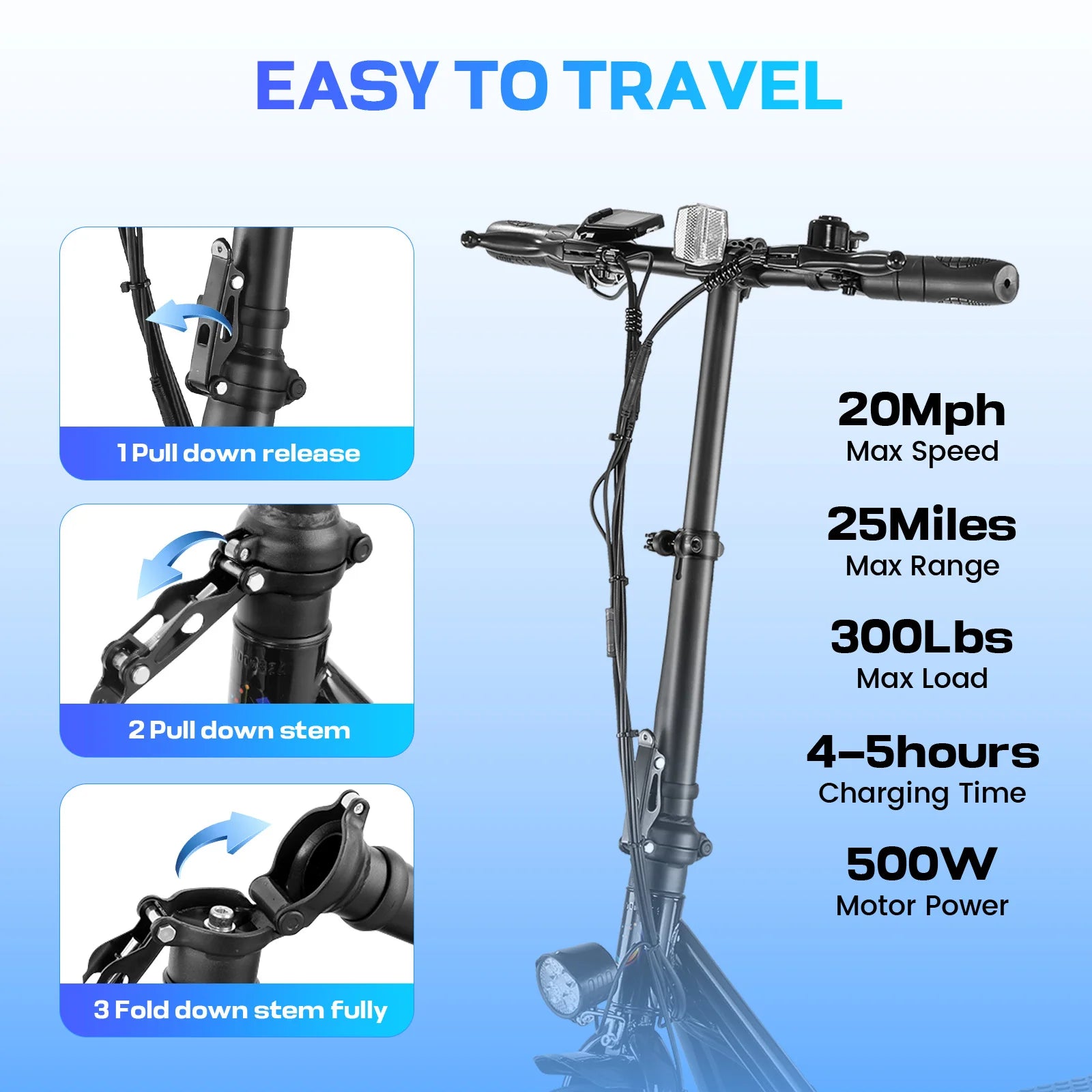500W Electric Scooter with Seat, Peak 750W, 375Wh, 7800mAh Battery, 25Mi Range, 20MPH, 14" Tire, Shock, Dual Disc Brake