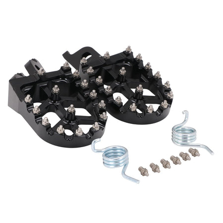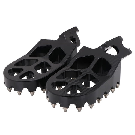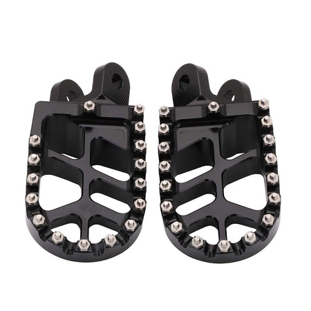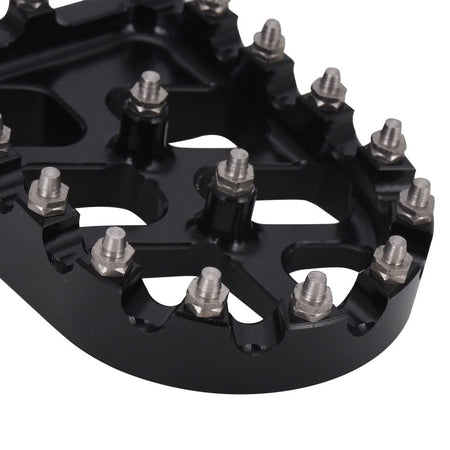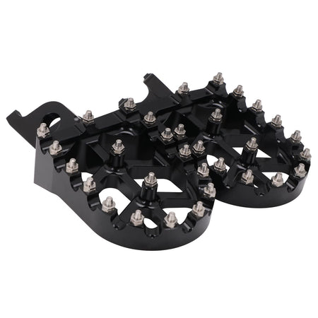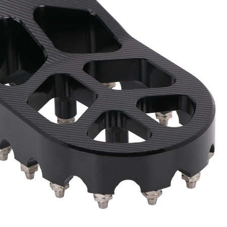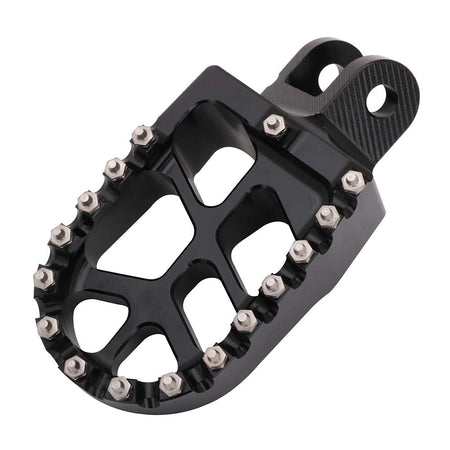 - 30% WIDER PLATFORM - It is wider and larger than the original dirt bike foot pegs to provide better friction and control, allowing your feet to stay in place without sliding; the wider platform disperses the impact and reduces the pressure on your feet.