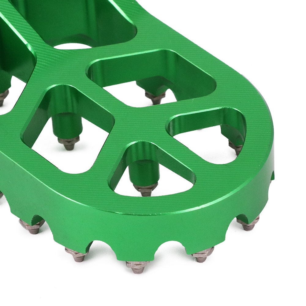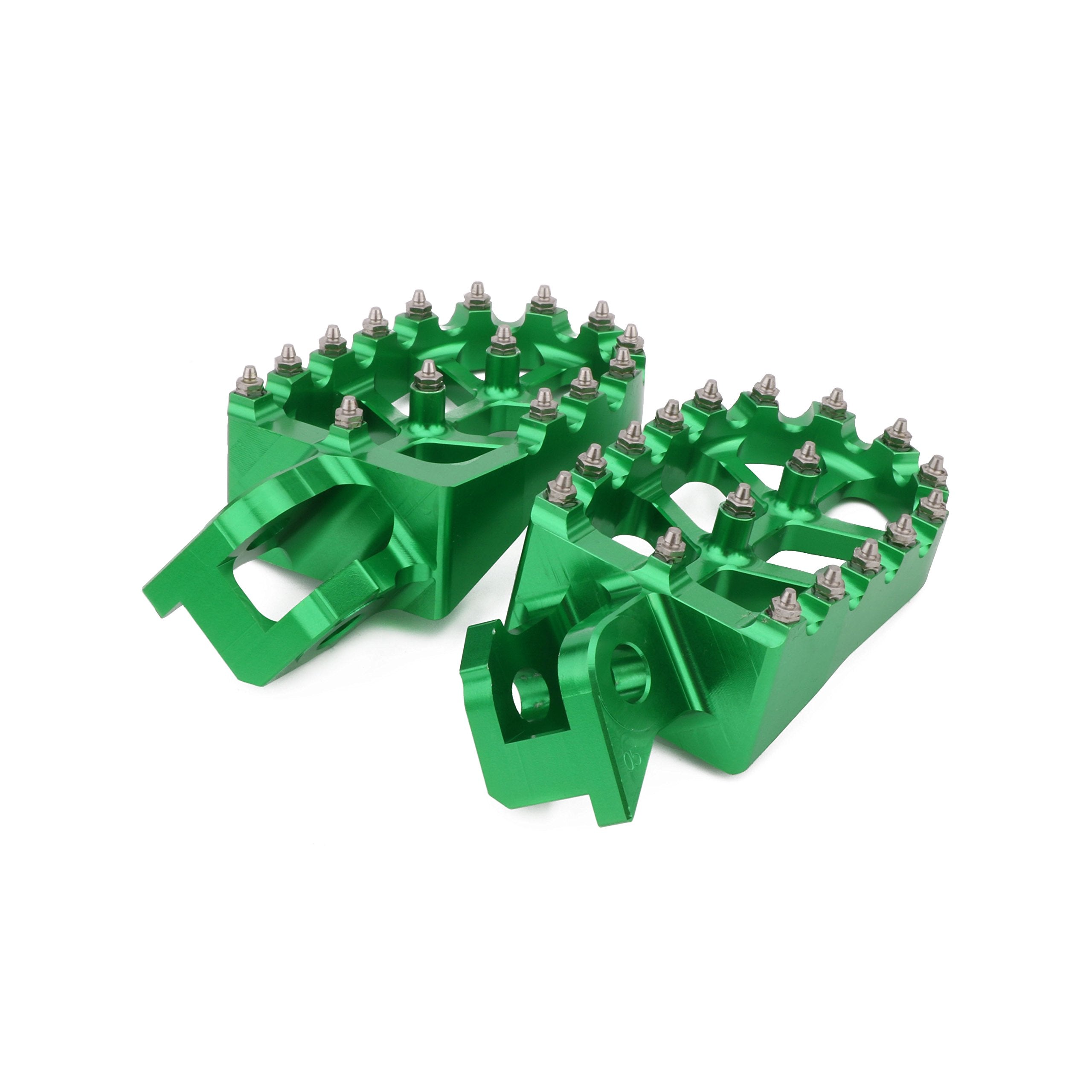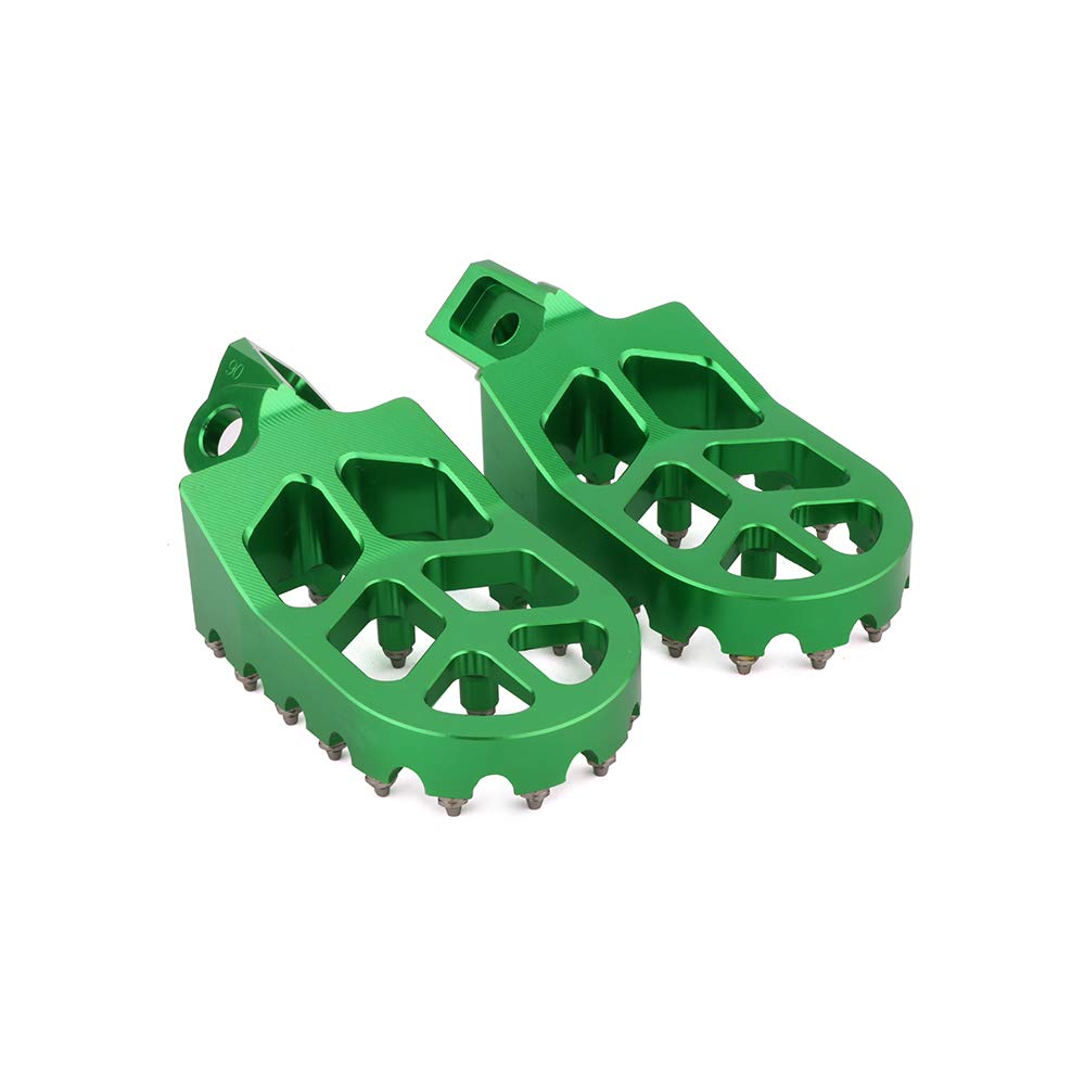 - ANODIZED SURFACE - After anodizing treatment, a beautiful oxide film is attached to the surface, which s the wear resistance and corrosion resistance of this dirt bike foot peg. The two shades of black and green are very suitable for the theme colors of motorcycles.