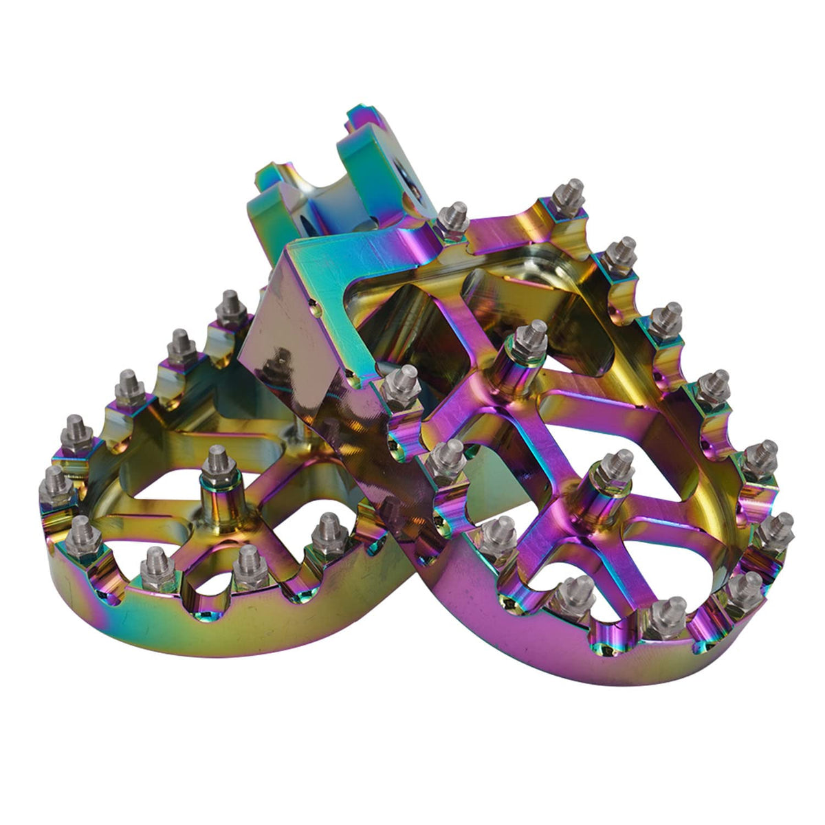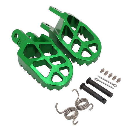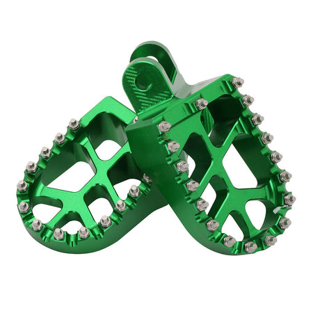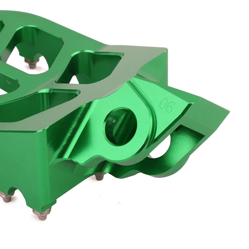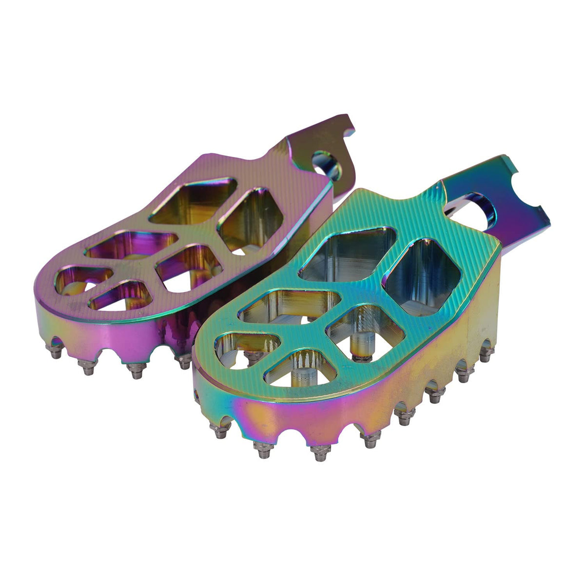 - ANODIZED SURFACE - After anodizing treatment, a beautiful oxide film is attached to the surface, which s the wear resistance and corrosion resistance of this dirt bike foot peg. The two shades of black and green are very suitable for the theme colors of motorcycles.