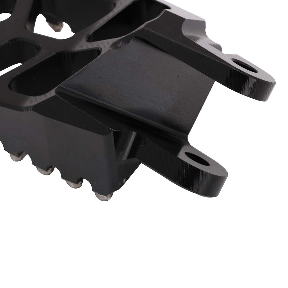 - ALUMINUM ALLOY - It is made of 6061-T6 aluminum alloy through CNC. It is one of the highest strength alloys, not rust and corrode, not easy to break and wear. The unique "Y" bridge structure s the strength and stability of the pedal, making it the strongest motorcycle foot pegs on the market.