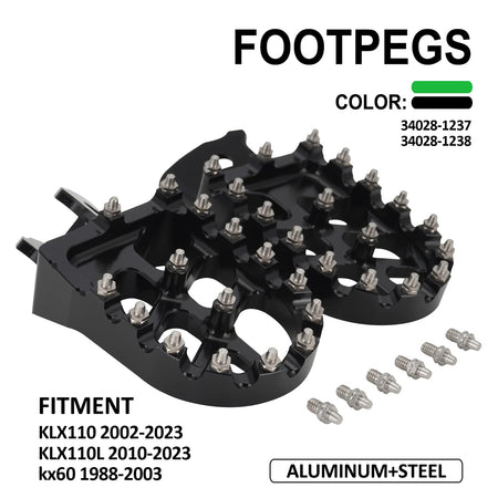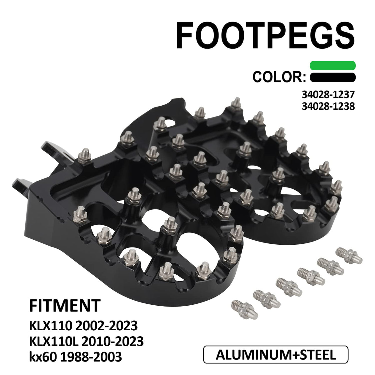 - FITMENT - This dirt bike foot pegs fit for KX250F 06-18 KX250 19-present KX450F 07-18 KX450 19-present KLX450R 08-14 KX250X KX450X 21-present.
