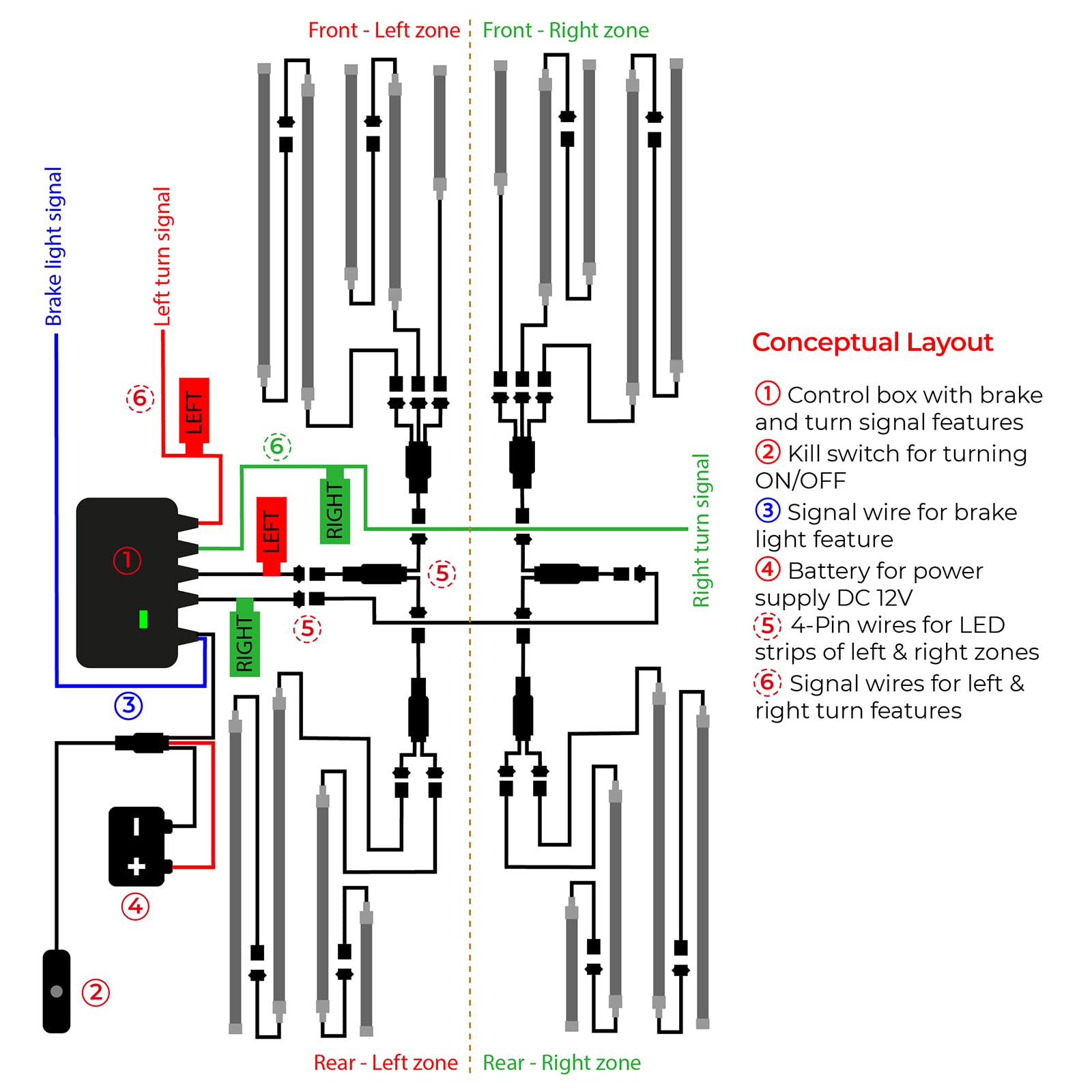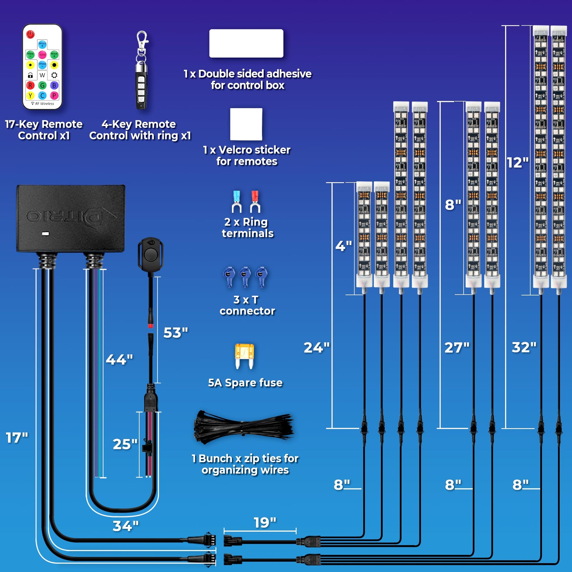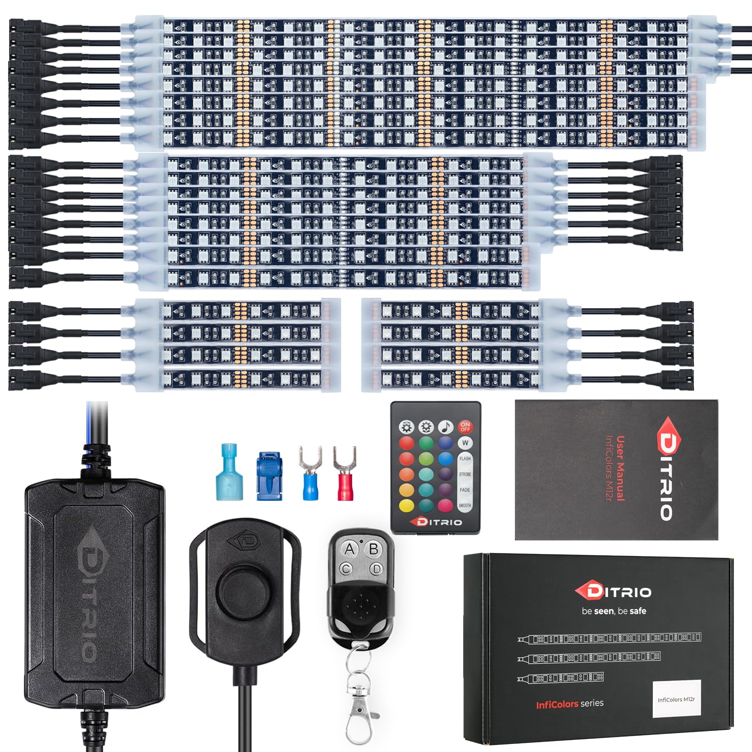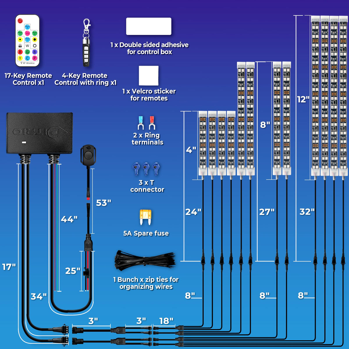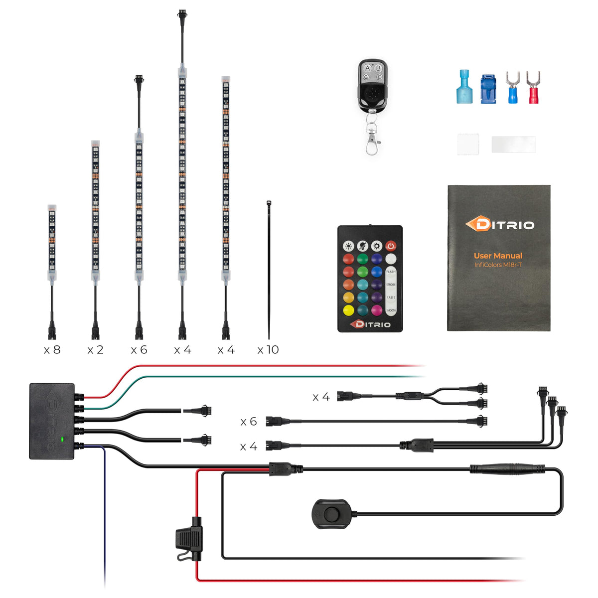 DITRIO 12pcs Underglow RGB LED Strip Light Kit for Motorcycles, Golf Carts, and ATVs