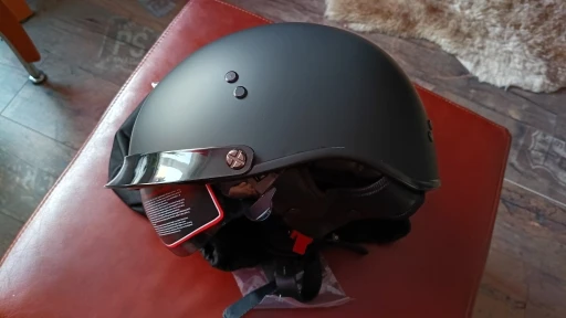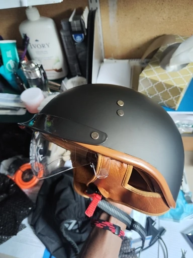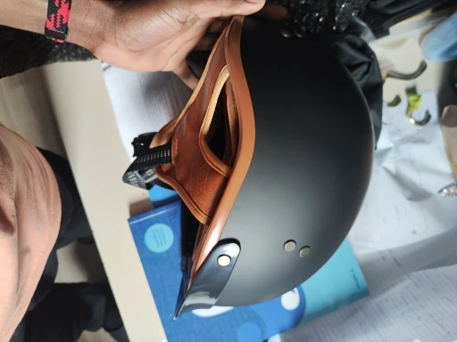 Beautiful helmet with matte black color and beige interior, very well padded and with quick release strap, truly an excellent value for money, a purchase that I feel compelled to highly recommend.