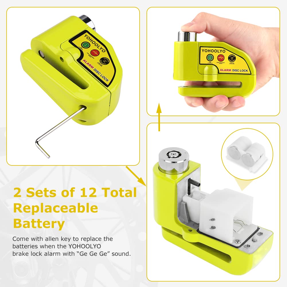 YOHOOLYO Alarm Disc Lock - Motorcycle Disc Brake Lock with Anti-Theft Alert